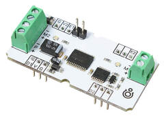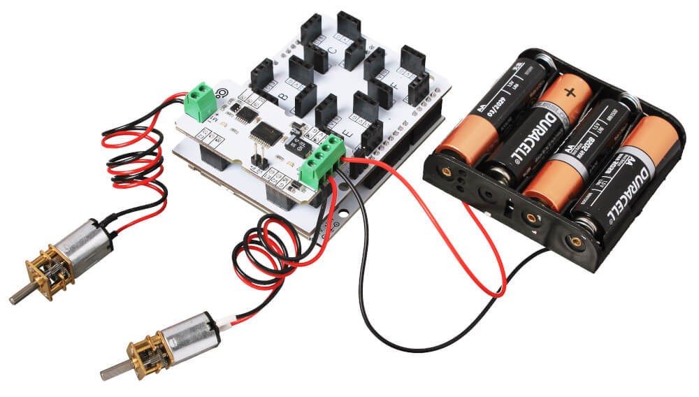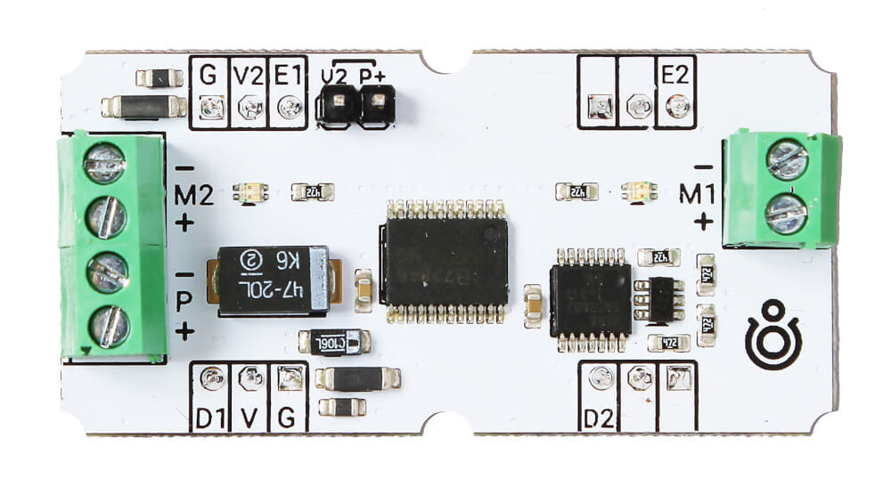 Управлять двумя моторами — дело несложное, но ставить Motor Shield бывает слишком громоздко и избыточно. Двухканальный H-мост в формате Troyka-модуля занимает всего два слота и позволяет независимо управлять направлением и скоростью вращения двух коллекторных двигателей.НачинкаМодуль построен на полупроводниковом чипе TB6612FNG от компании Toshiba, который рассчитан на управление двигателями постоянного тока и выдерживает пиковые скачки до 3 А на протяжении 10 мс. Для продолжительной работы используйте моторы с максимальным током до 1,2 А.При разгоне и торможении коллекторные двигатели индуцируют кратковременный обратный ток большой величины, способный выжечь контакты микроконтроллера. На модуле предусмотрена обвязка, которая это предотвращает.Для индикации режима работы каждого канала предназначены два светодиода. Их цвет показывает направление вращения (зелёный/красный), а яркость пропорциональна скорости вращения моторов.ПодключениеМодуль двухканального H-моста подключается к контроллерам с помощью соединительных проводов «мама-папа».При подключении к платформам форм-фактора Arduino R3 — например, Arduino или Iskra JS, — рекомендуем использовать плату расширения Troyka Shield. А для одноплатных компьютеров Raspberry Pi советуем Troyka HAT. Для соединения всех вилок понадобятся 4 трёхпроводных шлейфа «мама-мама» из комплекта к модулю.Удобнее всего подключать драйвер двигателей через плату расширения Troyka Slot Shield, либо воспользоваться унифицированными платами Uno Slot или Wi-Fi Slot, в которых понадобится два свободных слота.Клеммы M1+/М1- и M2+/M2- предназначены для подключения двух коллекторных моторов или одного биполярного шагового двигателя.ПитаниеМодуль H-моста содержит два независимых контура питания: логическое и силовое.Логический контур Vcc используется при общении с управляющей электроникой. Рабочее напряжение на нём составляет 3,3–5 В и поступает с платы управления.Силовой контур Vm необходим для питания электромоторов. Он подключается к отдельному клеммнику P+/P− с напряжением питания 3,3–12 В и выдаёт ток до 1,2 А на каждый канал.Следите за тем, чтобы источник питания силового контура соответствовал номинальным характеристикам используемых моторов. Для стабильной работы H-моста с двумя двигателями рекомендуем блоки питания с выходным током не менее 2 А. Возьмите батарейный отсек, чтобы запитать H-мост автономно.Комплектация1× Плата-модуль H-моста (2 канала)4× Трёхпроводной шлейф «мама-мама»ХарактеристикиДрайвер моторов: Toshiba TB6612FNGКоличество подключаемых моторов: 2Напряжение логической части: 3,3–5 ВНапряжение силовой части: 3,3–12 ВМаксимальный ток нагрузки: до 1,2 A на каналМаксимальная частота переключения (ШИМ): 100 кГцГабариты: 50,8×25,4×19,1 ммРесурсыОбзор двухканального Н-моста (Troyka-модуль):Инструкция, примеры использования и документацияЧто такое Troyka-модули?Подробнее о платформах Troyka SlotБиблиотека для Arduino — управление шаговым двигателемБиблиотека для Espruino — управление коллекторными моторами