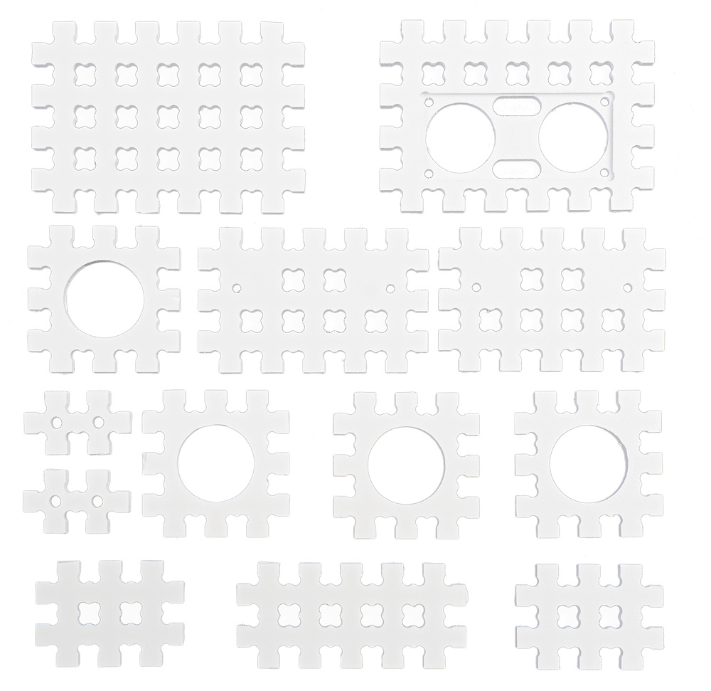 Крепления дальномеров превращают распространённые датчики измерения расстояния в элементы #структора.Датчики помогут вашему роботу ориентироваться в пространстве и обнаружат пересечение охраняемого дверного проёма. А благодаря #структору прикрепить их к своему устройству не составит труда.Этот набор деталей содержит крепления для ультразвукового дальномера HC-SR04, инфракрасных дальномеров Sharp (10 80), Sharp (20 150), Sharp (4 30 см) и крепление для инфракрасных датчиков препятствий.Про #структорИзготовление корпуса для девайса своей мечты из подручных средств — та ещё морока. Вместо палок и скотча используйте #структор.#Структор — это решётчатый конструктор для быстрой сборки корпусов и механических узлов вашего умного устройства. Это удобные крепления для распространённой хобби-электроники и электромеханики. Это детальки, с помощью которых вы быстро превратите комочек запутанных проводов в законченное, опрятное устройство. Наконец-то самоделка станет приятным элементом декора.#Структор разработан и выпускается Амперкой. Мы изготавливаем детали фрезеровкой из 5 мм вспененного ПВХ.Это очень лёгкий материал, его плотность всего 0,55 г/см³. Прочности материала и соединений хватает для использования в качестве конструктивного элемента при изготовлении корпусов или небольших роботов.#Структор — не одноразовый, но и не очень многоразовый. Ресурса деталей хватит на десяток-другой сопряжений друг с другом, после чего материал запоминает деформацию и держится не плотно.Детали легко резать ножом, склеивать суперклеем и красить. Подробнее о всех возможностях #структора читайте на [вики].Все детали поставляются в специальной матрице, размером 17×17 см. Чтобы извелчь деталь из матрицы используйте скальпель или канцелярский нож.Габаритный чертёжРазмер любой стороны детали в сантиметрах легко вычислить, посчитав шипы. Количество шипов плюс 0,5 см и будет размером стороны.Технические характеристикиМатериал: вспененный ПВХ шириной 5 ммТемпературный диапазон: 0…+60 °CПлотность: 0,55 г/см³КомплектацияДетальОписание1× Крепление ультразвукового дальномера HC-SR04 4×6 шипов2× Крепление инфракрасного дальномера Sharp 3×5 шипов4× Крепление инфракрасного датчика препятствий 3×3 шипа2× Пластина 1×2 шипа2× Пластина 2×3 шипа1× Пластина 2×5 шипов1× Пластина 4×6 шиповСсылкиВидеообзор на YouTubeТехническое описаниеЧертежи для самостоятельного изготовленияИстория создания конструктора на Habrahabr.ru