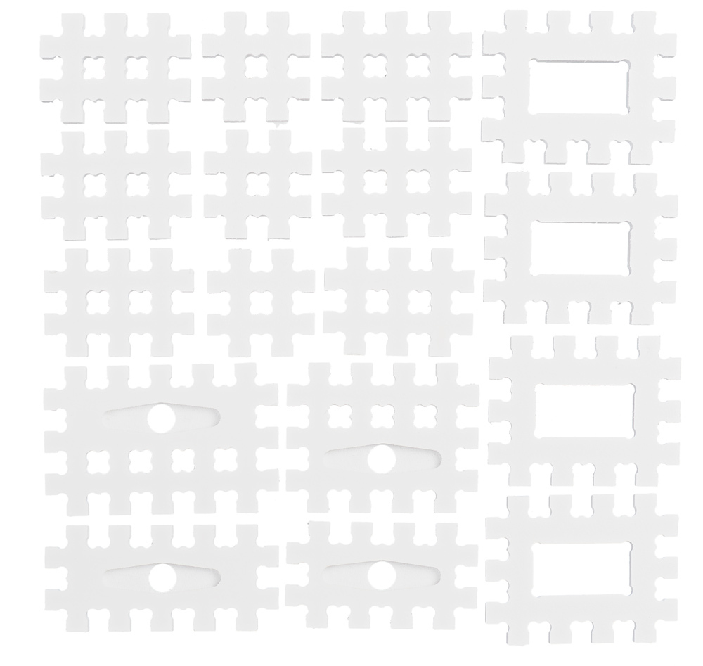 Крепления для сервоприводов размера микро помогут вам соединить их с другими элементами #структора. Детали предназначены как для фиксации корпуса сервомоторов, так и для установки других деталей на их валу.Используйте эти элементы, чтобы делать суставы манипуляторов, устройства контроля поворота и наклона, ноги роботов.Про #структорИзготовление корпуса для девайса своей мечты из подручных средств — та ещё морока. Вместо палок и скотча используйте #структор.#Структор — это решётчатый конструктор для быстрой сборки корпусов и механических узлов вашего умного устройства. Это удобные крепления для распространённой хобби-электроники и электромеханики. Это детальки, с помощью которых вы быстро превратите комочек запутанных проводов в законченное, опрятное устройство. Наконец-то самоделка станет приятным элементом декора.#Структор разработан и выпускается Амперкой. Мы изготавливаем детали фрезеровкой из 5 мм вспененного ПВХ.Это очень лёгкий материал, его плотность всего 0,55 г/см³. Прочности материала и соединений хватает для использования в качестве конструктивного элемента при изготовлении корпусов или небольших роботов.#Структор — не одноразовый, но и не очень многоразовый. Ресурса деталей хватит на десяток-другой сопряжений друг с другом, после чего материал запоминает деформацию и держится не плотно.Детали легко резать ножом, склеивать суперклеем и красить. Подробнее о всех возможностях #структора читайте на [вики].Все детали поставляются в специальной матрице, размером 17×17 см. Чтобы извелчь деталь из матрицы используйте скальпель или канцелярский нож.Габаритный чертёжРазмер любой стороны детали в сантиметрах легко вычислить, посчитав шипы. Количество шипов плюс 0,5 см и будет размером стороны.Технические характеристикиМатериал: вспененный ПВХ шириной 5 ммТемпературный диапазон: 0…+60 °CПлотность: 0,55 г/см³КомплектацияДетальОписание4× Крепление микросервопривода 3×4 шипа1× Крепление качалки 2×4 шипа1× Крепление качалки 2×6 шипов1× Крепление качалки со смещением 3×4 шипа1× Крепление качалки со смещением 3×5 шипов3× Пластина 2×2 шипа6× Пластина 2×3 шипаСсылкиВидеообзор на YouTubeТехническое описаниеЧертежи для самостоятельного изготовленияИстория создания конструктора на Habrahabr.ru