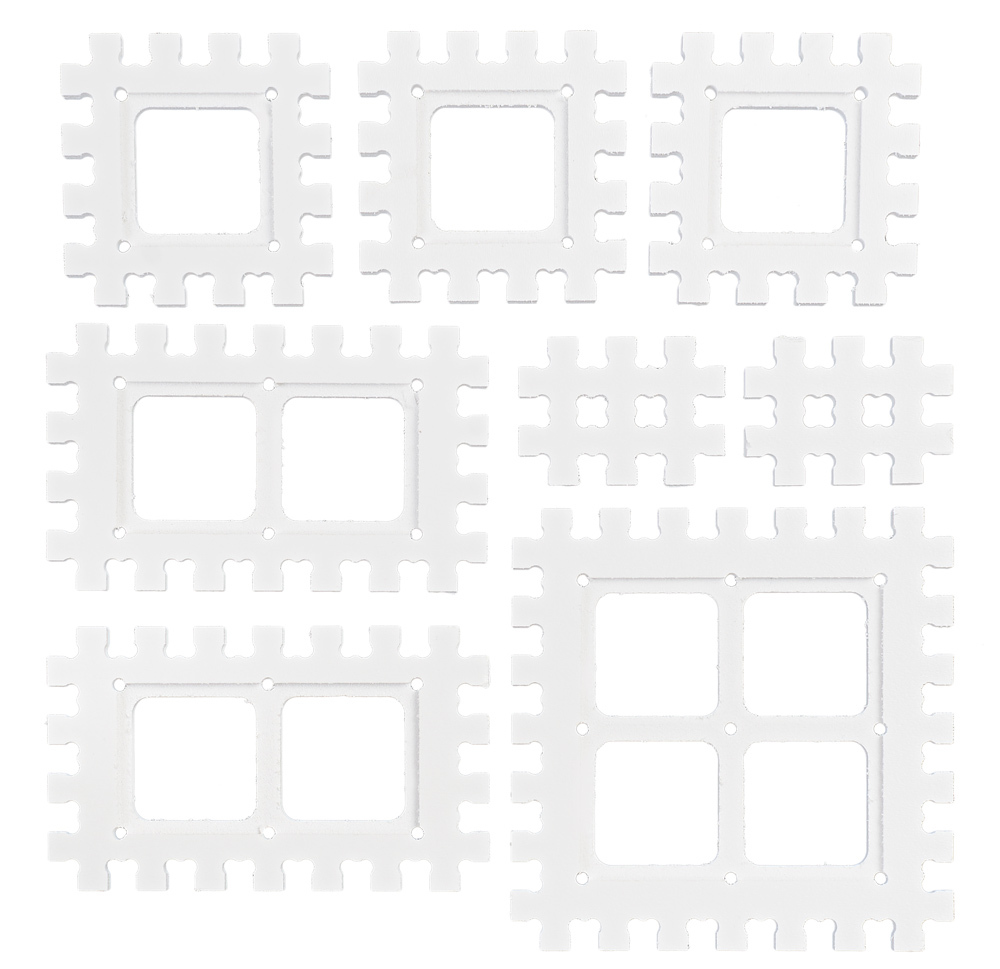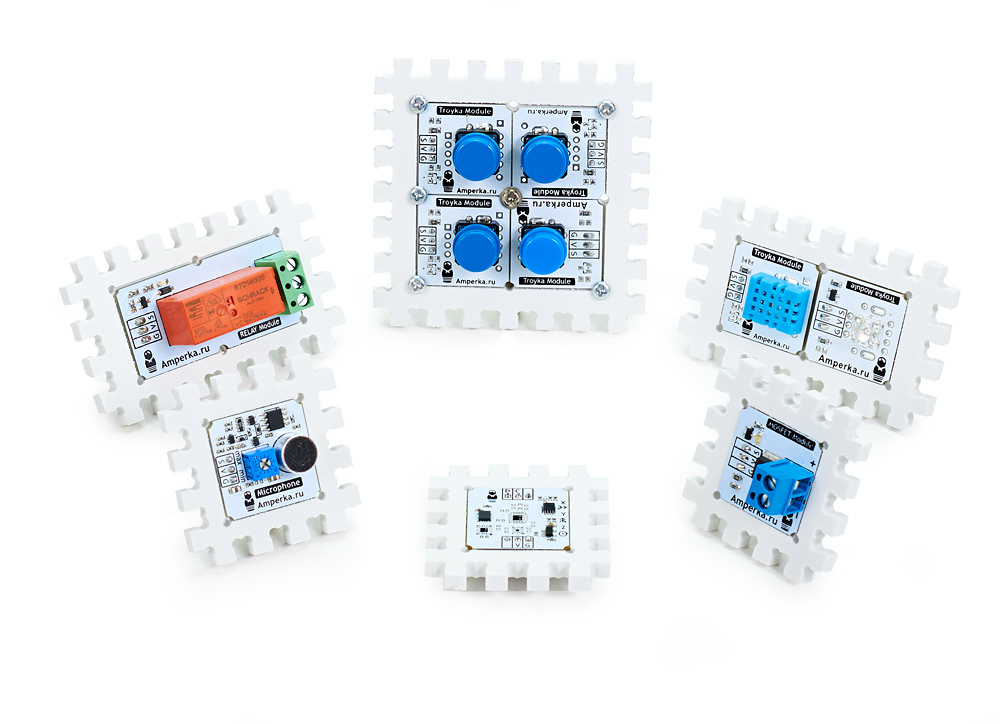Крепления Troyka-модулей превращают стандартные датчики, элементы управления и исполнительные устройства Troyka в элементы #структора.С помощью этих деталей вы можете собрать красивую лицевую панель с кнопками, потенциометрами и дисплеем.Нужно быстро разместить датчики внутри корпуса или собрать светофор из светодиодов? #Структор поможет сделать это очень быстро.Для крепления Troyka-модулей к #структору просто вставьте модуль в специальную выемку. Для большей надёжности крепления используйте винты М3. Винты надёжно держатся в #структоре даже без гаек.Про #структорИзготовление корпуса для девайса своей мечты из подручных средств — та ещё морока. Вместо палок и скотча используйте #структор.#Структор — это решётчатый конструктор для быстрой сборки корпусов и механических узлов вашего умного устройства. Это удобные крепления для распространённой хобби-электроники и электромеханики. Это детальки, с помощью которых вы быстро превратите комочек запутанных проводов в законченное, опрятное устройство. Наконец-то самоделка станет приятным элементом декора.#Структор разработан и выпускается Амперкой. Мы изготавливаем детали фрезеровкой из 5 мм вспененного ПВХ.Это очень лёгкий материал, его плотность всего 0,55 г/см³. Прочности материала и соединений хватает для использования в качестве конструктивного элемента при изготовлении корпусов или небольших роботов.#Структор — не одноразовый, но и не очень многоразовый. Ресурса деталей хватит на десяток-другой сопряжений друг с другом, после чего материал запоминает деформацию и держится не плотно.Детали легко резать ножом, склеивать суперклеем и красить. Подробнее о всех возможностях #структора читайте на [вики].Все детали поставляются в специальной матрице, размером 17×17 см. Чтобы извелчь деталь из матрицы используйте скальпель или канцелярский нож.Габаритный чертёжРазмер любой стороны детали в сантиметрах легко вычислить, посчитав шипы. Количество шипов плюс 0,5 см и будет размером стороны.Технические характеристикиМатериал: вспененный ПВХ шириной 5 ммТемпературный диапазон: 0…+60 °CПлотность: 0,55 г/см³КомплектацияДетальОписание3× Крепление Troyka 4×4 шипа2× Крепление двух юнитов Troyka 4×7 шипов1× Крепление четырёх юнитов Troyka 7×7 шипов2× Пластина 2×3 шипаСсылкиВидеообзор на YouTubeТехническое описаниеЧертежи для самостоятельного изготовленияИстория создания конструктора на Habrahabr.ru
