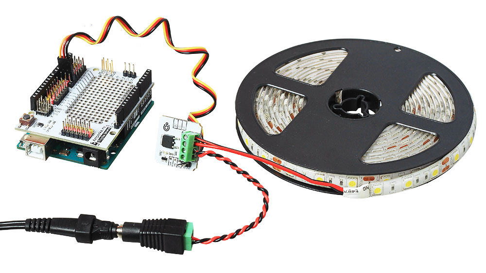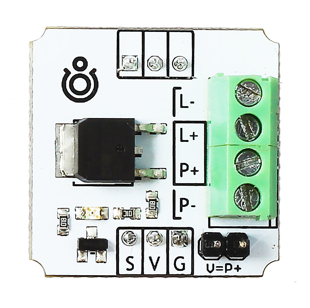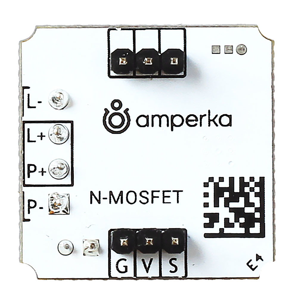 Силовой ключ на базе полевого транзистора с каналом N-типа подойдёт для коммутации цепей с большим постоянным током. Модуль пригодится для управления светодиодными лентами, погружной помпой в системе автополива, соленоидами или электродвигателями. N-channel MOSFET позволит вам не возиться с пайкой, макетной платой и необходимой обвязкой для работы полевого транзистора — всё уже собрано в виде готового Troyka-модуля.У транзисторного ключа есть важное преимущество перед обыкновенным реле: вы сможете плавно управлять нагрузкой (яркостью светодиодов, скоростью электродвигателя и т. п.) с помощью ШИМ, а не просто включать-выключать питание.Отличия N- и P-канальных силовых ключейСиловые ключи на полевых транзисторах с переходом N- и P-типа решают похожие задачи, но у них отличается принцип управления нагрузкой.Силовой ключ на N-канальном транзисторе переключает минусовой контакт нагрузки, а для управления достаточно напряжения ТТЛ-схем. Этот вариант наиболее часто используется с Arduino и другими микроконтроллерами.В случае с P-канальным транзистором переключается плюсовой контакт нагрузки, но для управления нужны более высокие уровни напряжения. Поэтому мы выпускаем силовой ключ P-типа в виде Troyka-модуля, заточенного для Arduino, Raspberry Pi и других управляющих платформ.Начинка и управлениеДанный силовой ключ содержит полевой транзистор с N-каналом, который переключает минусовой контакт нагрузки. Он управляется напряжением логического уровня 3,3–5 В и совместим с любым контроллером.При логическом нуле на управляющем контакте ключ разомкнут. При подаче логической единицы ключ замыкается, и через транзистор начитает протекать ток. На модуле силового ключа присутствует светодиод для индикации состояния: он горит при открытом транзисторе и гаснет при закрытом. При использовании ШИМ-сигнала яркость светодиода пропорциональна коэффициенту заполнения ШИМ.ПодключениеМодуль подключается у управляющей платформе через группу Troyka-контактов.Сигнальный (S) — управляющий контакт силового ключа, подключаемый к цифровому пину микроконтроллера.Питание (V) — соединяется с рабочим напряжением контроллера.Земля (G) — соединяется с землёй микроконтроллера.Для подключения к Arduino пригодится Troyka Shield и приложенный в комплекте трёхпроводной шлейф. Чтобы вовсе избавиться от проводов, воспользуйтесь Troyka Slot Shield. А для управления ключом с микрокомпьютера Raspberry Pi используйте Troyka HAT.Контакты нагрузки подключаются к колодкам под винт L+ и L- с соблюдением полярности. Источник питания нагрузки подключается к колодкам под винт P+ и P-.Обратите внимание, что контакты L+ и P+ на модуле объединены, а силовой ключ коммутирует контакты L- и P-.ХарактеристикиТранзистор: IRLR8113 (N-канальный)Рабочее напряжение: 3,3–5 ВПотребляемый ток: до 100 мАМаксимальное коммутируемое напряжение: 30 ВМаксимальный коммутируемый ток: 20 АГабариты: 25,4×25,4 ммРесурсыВидеообзор силового ключа v3:Инструкция, примеры использования и документацияЧто такое Troyka-модули?
