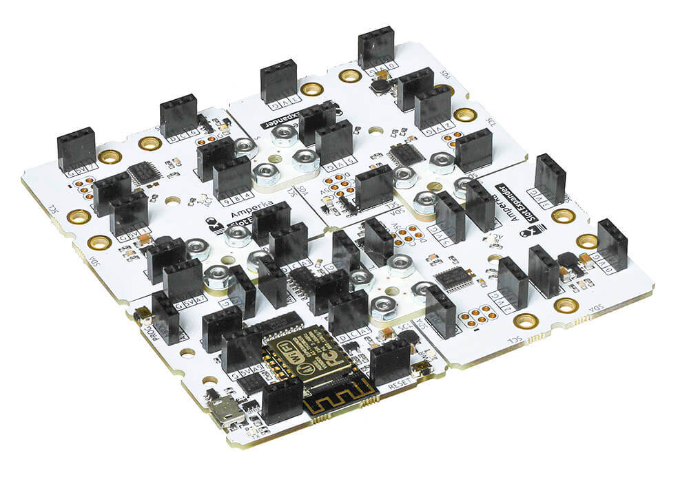 Slot Connector поможет объединить Uno Slot или Wi-Fi Slot и Slot Expander в одно устройство.Джамперы формата Slot Connector используются для соединения Slot-платформ между собой. Они входят в комплект этих модулей, но такие мелкие детали зачастую теряются.На первый взгляд, квадратик из текстолита не предсталяет ничего особенного. Но хитрая схема перебрасывает линии питания и шину I²C c одной платы на другую с помощью болтов, шайб и гаек. В результате получается крепкое и надёжное соединение — без пайки, проводов и изоленты. Для соединения просто скрутите платформы между собой болтами М3.Если вам удобнее проводное соединение между платами — воспользуйтесь Slot Connector Screw Terminal с винтовым клеммником.Каждая новая пара Slot Expander и Slot Connector добавляет проекту десять универсальных пинов ввода-вывода.Комплектация1× Плата Slot Connector4× Металический винт М34× Металическая гайка М38× Металлическая шайба М3 DIN 125ХарактеристикиСовместимость: Uno Slot, Wi-Fi Slot, Slot ExpanderГабариты: 16×16×2 ммРесурсыОбзор платформы: