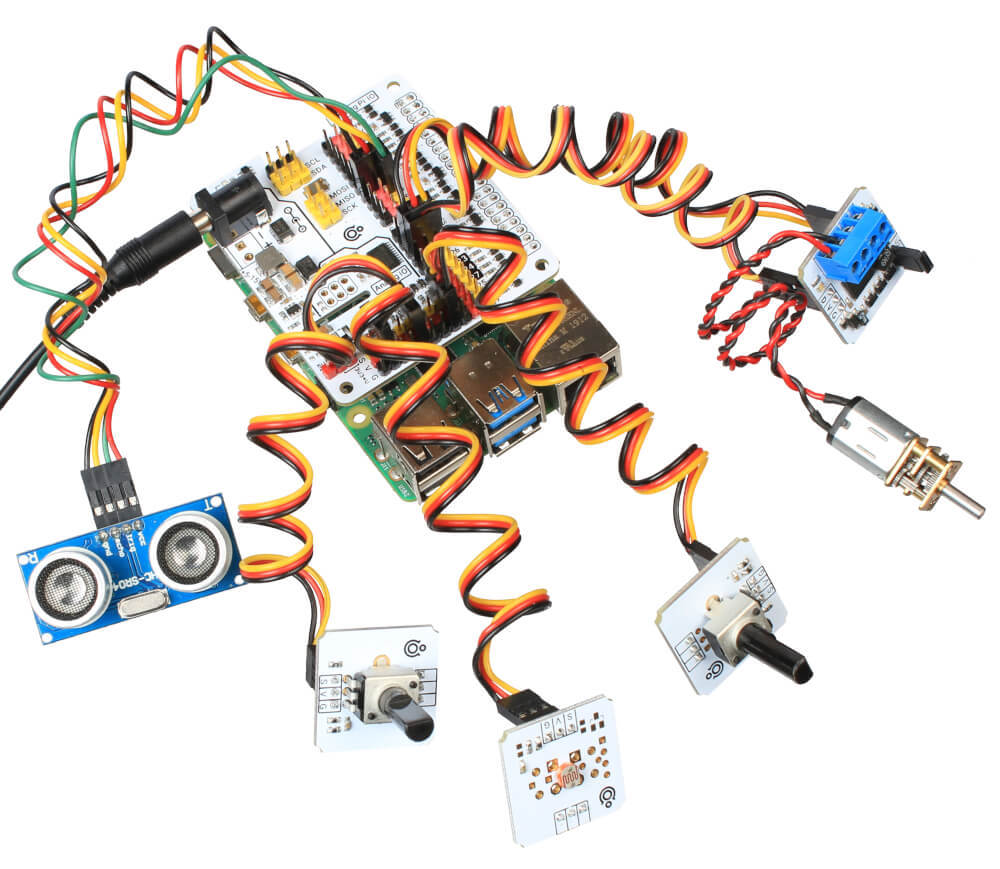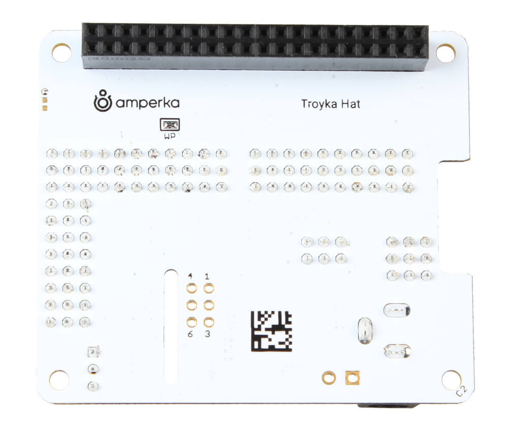 Забудьте о макетках, хаотичных проводах и замороченной распиновке! Универсальный хаб Troyka HAT подружит вашу Raspberry Pi с датчиками и исполнительными устройствами в формате Troyka-модулей с аккуратным трёхпроводным подключением.Попутно платформа Troyka HAT добавит одноплатнику восемь пинов с АЦП и ШИМ, чтобы работать с аналоговой периферией без лишних костылей.ОсобенностиПлата Troyka HAT разработана и выпускается Амперкой как центральное звено экосистемы Troyka-модулей для Raspberry Pi.Интерфейсы Raspberry Pi: 21 группа Troyka-контактов, 3× I²C и 2× SPI.Микроконтроллер STM32F030F4P6 в качестве I²C-расширителя портов.Интерфейсы I²C-расширителя: 8 Troyka-контактов с 12-битным АЦП и 16-битным ШИМ.На борту Troyka HAT содержится силовая часть для питания подключённой периферии.Все сигнальные пины толерантны к 5 В, поэтому вы не ограничены в выборе модулей.ПодключениеМодуль Troyka HAT устанавливается на Raspberry Pi через 40-штырьковую вилку GPIO. Плату форм-фактора HAT можно надёжно закрепить винтами через проставки.Контакты Raspberry PiНа плате установлены группы штыревых Troyka-контактов «S-5V-G»:сигнал (S) — цифровой пин Raspberry Pi;питание (5V) — питание модуля от линии 5 В;земля (G) — общая земля.Отдельными пинами мы вывели три группы контактов аппаратного интерфейса I²C и две группы SPI.Колодки позволяют быстро подключать типовые Troyka-модули через трёхпроводные шлейфы с единообразной распиновкой.Контакты I²C-расширителяПины расширителя выведены на отдельную группу Troyka-контактов «S-V-G»:сигнал (S) — сигнальный пин расширителя GPIO;питание (V) — питание модуля;земля (G) — общая земля.Напряжение на линии питания V в расширителе задаётся джампером:В положении 5V→V на линию V подаётся 5 В.В положении 3V3→V на линию V подаётся 3,3 В.Для работы с платой используйте наши библиотеки на Python или С++.ПитаниеПлата питается через DC-разъём источником постоянного напряжения от 7 до 15 вольт — например, подойдёт универсальный блок питания. Понижающий преобразователь DC-DC подстраивает входное напряжение до необходимых 5 вольт с максимальным выходным током до 3,5 ампер, поэтому питания через Troyka HAT хватит даже прожорливой Raspberry Pi 4.Комплектация1× Плата-модульХарактеристикиМодель: Amperka Troyka HAT (AMP-B192)Совместимость: микрокомпьютеры Raspberry PiИнтерфейс: штырьковые соединители GPIOКоличество Troyka-контактов:I/O (S-V-G): 21SPI: 3I²C: 2Напряжение логических уровней: 3,3 В (все пины толерантны к 5 В)Напряжение питания через DC-разъём: 7–15 ВМаксимальный ток контакта 5V: 3,5 АРазмеры: 65×56,5×20,5 ммРасширитель портовМикроконтроллер: STM32F030F4P6Адрес I²C: 0x2A (по умолчанию)Напряжение логических уровней: 3,3 В (все пины толерантны к 5 В)Напряжение питания периферии: 3,3 / 5 В (выбирается джампером)Количество Troyka-контактов: 8Контакты с поддержкой ШИМ: 8Разрядность ШИМ: 8 битКонтакты с АЦП: 8Разрядность АЦП: 12 битРесурсыTroyka HAT — универсальный хаб для Raspberry Pi:Инструкция, примеры использования и документацияЧто такое Troyka-модули?Библиотека на C++