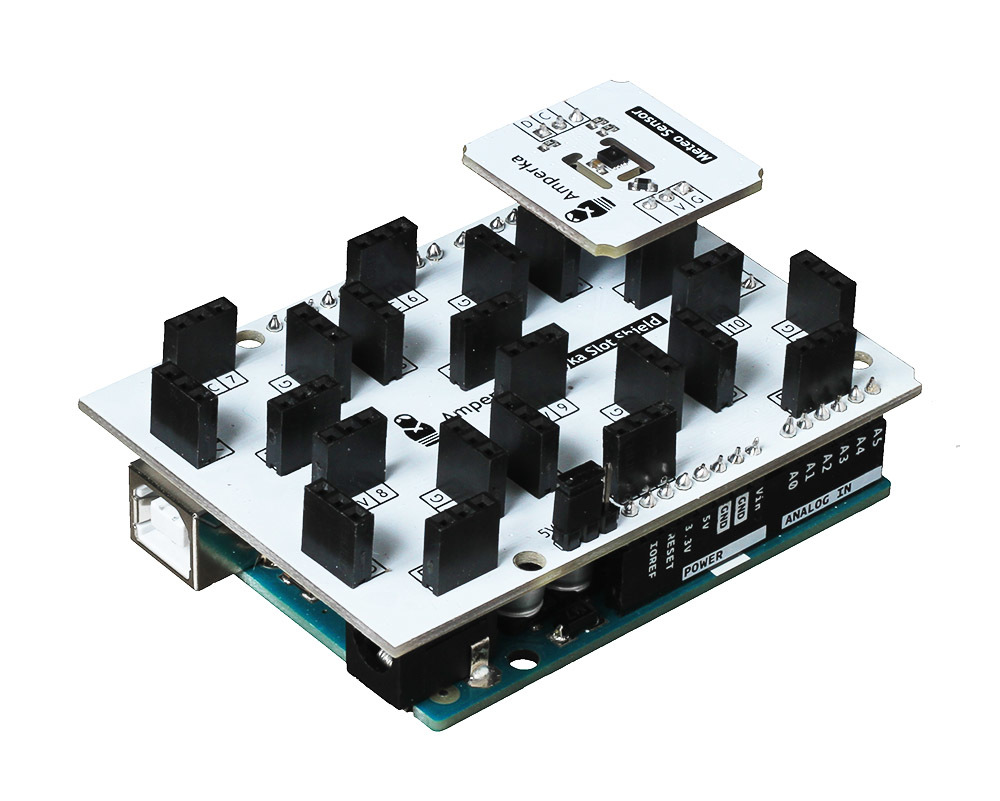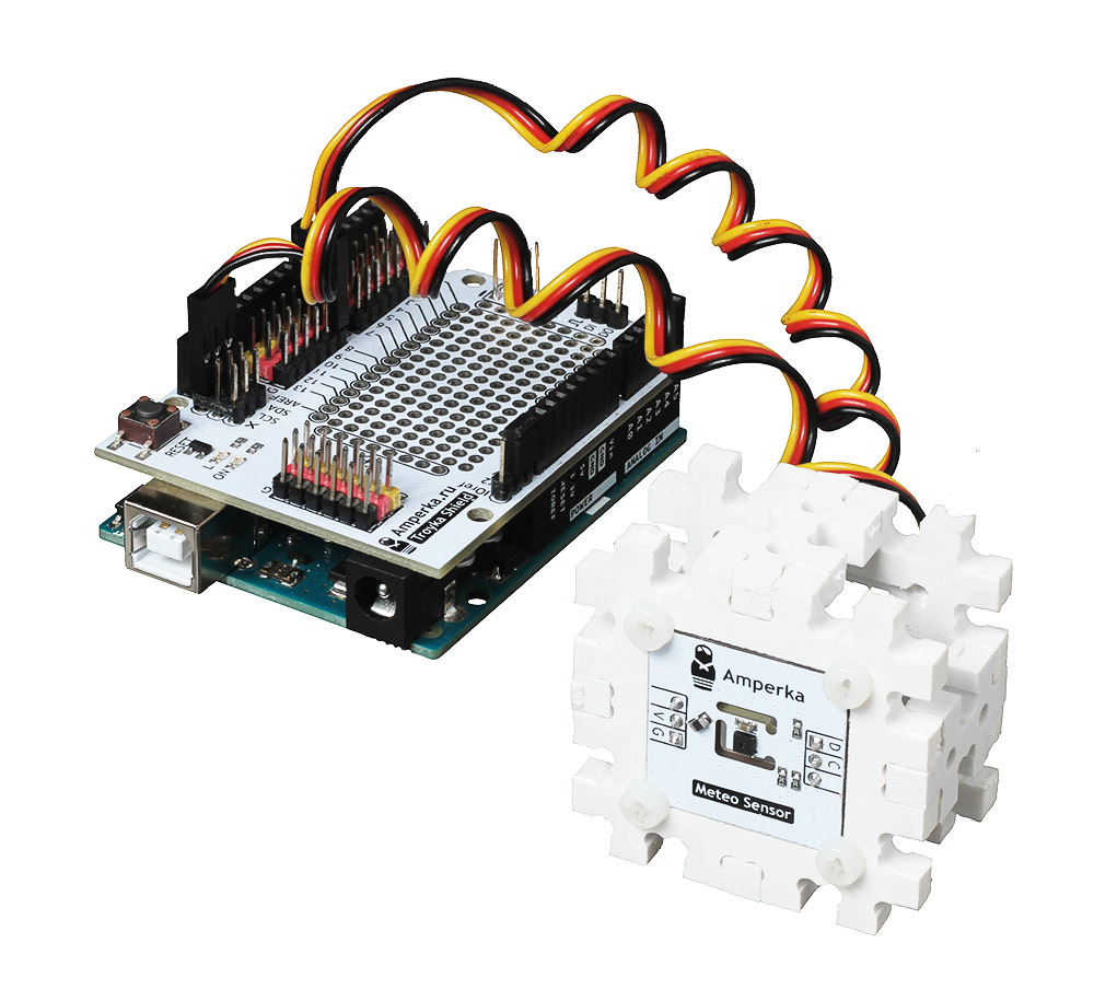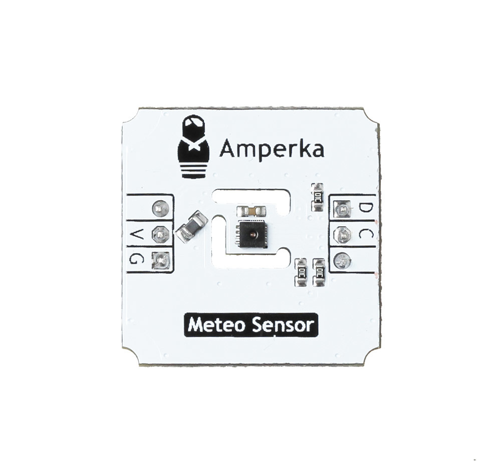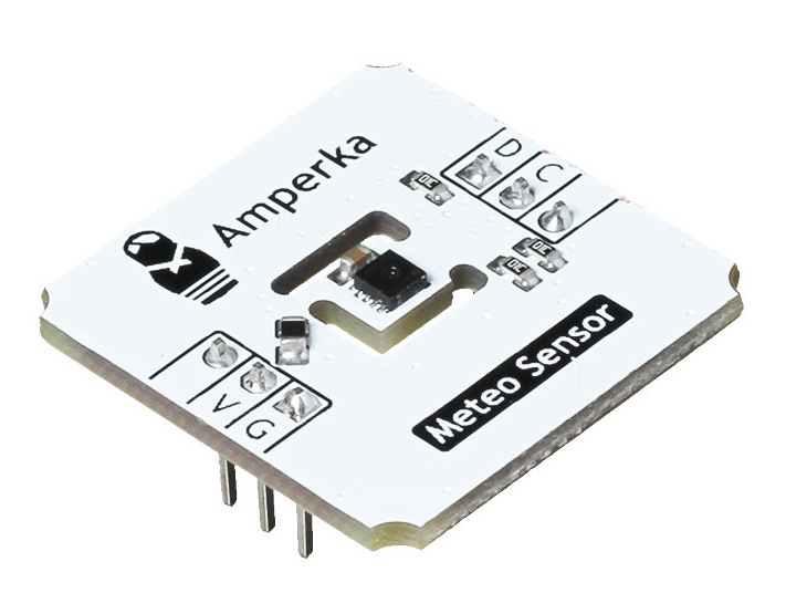 Соберите простую и высокоточную цифровую метеостанцию. Научитесь управлять погодой в доме. Датчик подскажет когда необходимо выключить кондиционер в комнате или запустить увлажнитель в парнике.Сердце датчика температуры и влажности — микросхема SHT31 от компании Sensirion.Чип выполнен по запатентованной технологии CMOSens®, откалиброван и отличается высокой точностью измерений.ПодключениеНа модуле выведено две пары Troyka-контактов.Нижняя группаПитание (V) — соедините с рабочим напряжением микроконтроллера.Земля (G) — Соедините с пином GND микроконтроллера.Верхняя группаСигнальный (D) — пин данных шины I²C. Подключите к SDA пину микроконтроллера.Сигнальный (C) — пин тактирования шины I²C. Подключите к SCL пину микроконтроллера.При подключении к платформам Arduino и Iskra JS используйте плату расширения Troyka Shield. А с Troyka Slot Shield забудьте о проводах вовсе.ПрограммированиеНа аппаратном уровне датчик общается с управляющей электроникой по шине I²C.Но не переживайте о битах и байтах. Мы написали библиотеки, которые скрывают в себе сложности и детали протокола. На выходе общение с модулем чуть сложнее мигания светодиодом.Библиотека для ArduinoБиблиотека для EspruinoКомплектация1× плата модуль2× трёхпроводных шлейфаХарактеристики Диапазон измеренияРазрешениеПогрешностьТемпература−40…+125 °С0,01 °С±0.2 °СВлажность0–100 %RH0,01 %RH±2 %RHЧип: SHT31Напряжение питания: 3.3–5 ВИнтерфейс: I²CАдрес модуля: 0x44 (по умолчанию) / 0x45Габариты: 25,4×25,4 ммРесурсыРуководство по использованию, примеры и документацияЧто такое Troyka-модули?Библиотека для ArduinoБиблиотека для Espruino