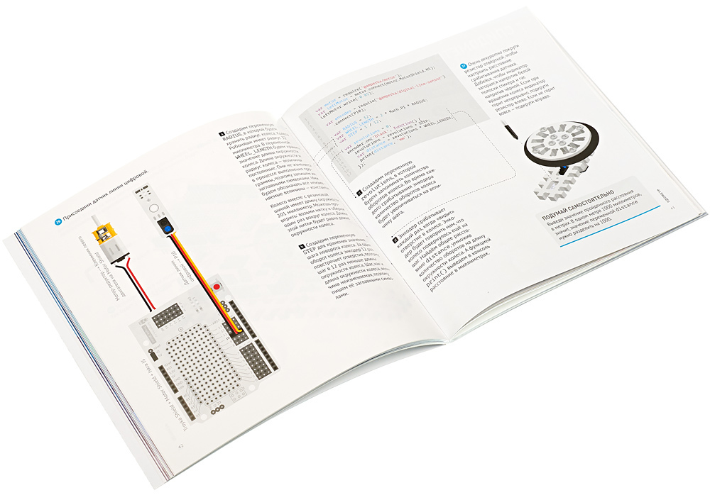 Каждый эксперимент сопровождается цветной схемой сборки, необходимой теорией и готовыми программами.