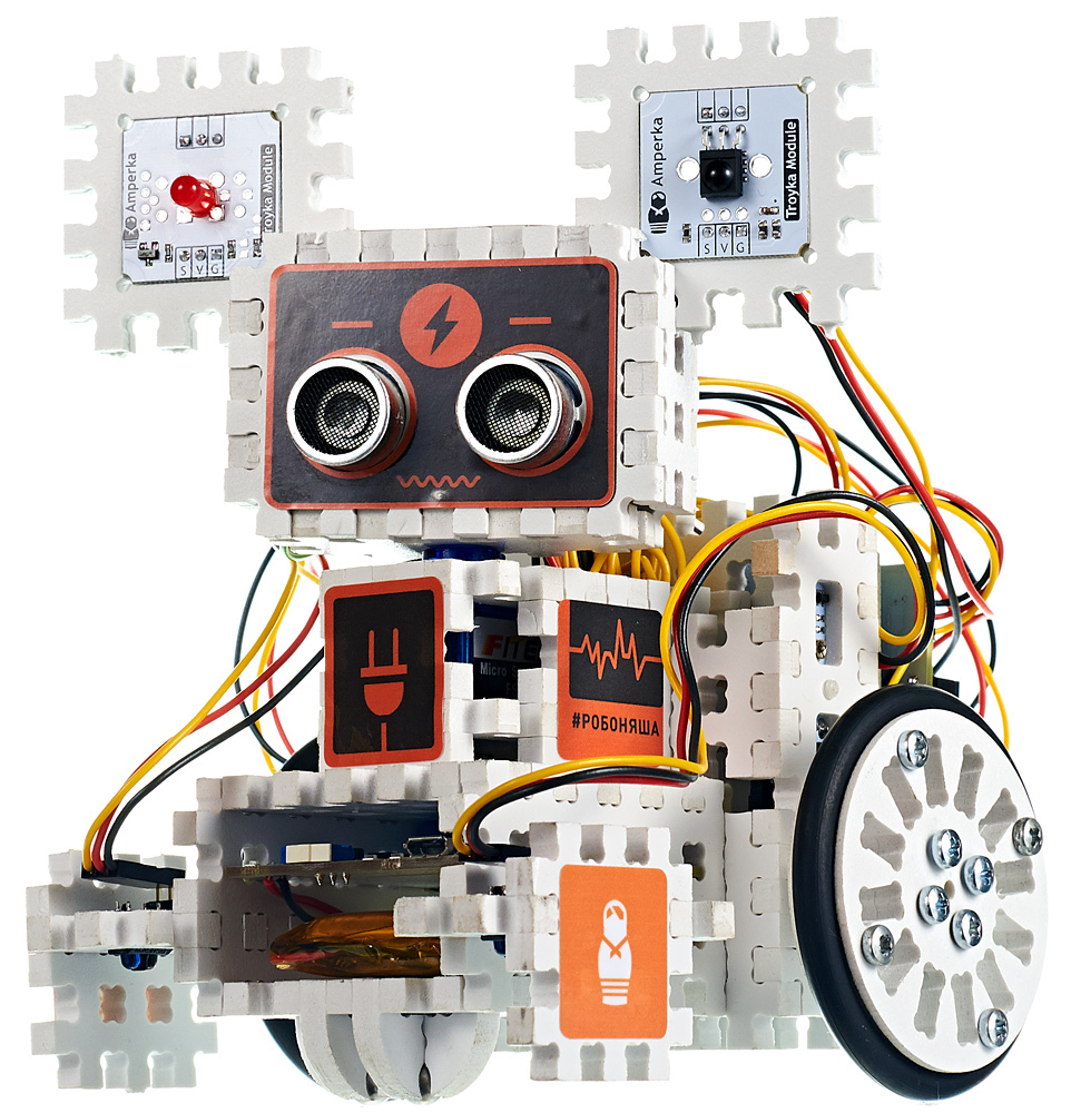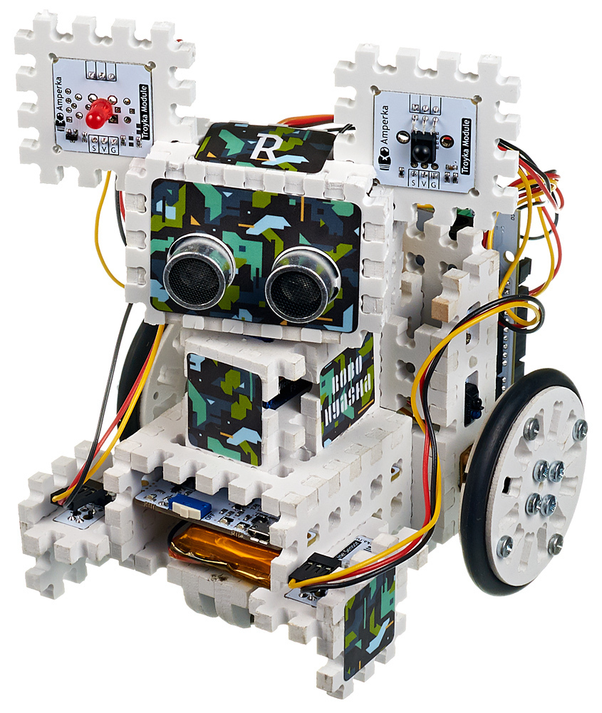 Конструктор безопасен — напряжение питания в модулях робота не превышает 9 вольт, а сборка не требует пайки и дополнительных инструментов.