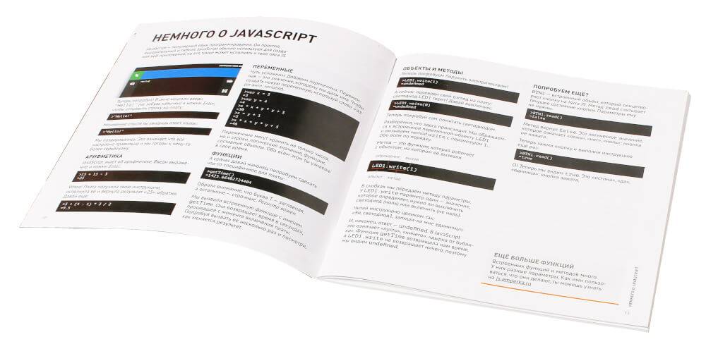 Вы познакомитесь с основами JavaScript, узнаете об электричестве, сигналах, видах модулей и плат расширения.
