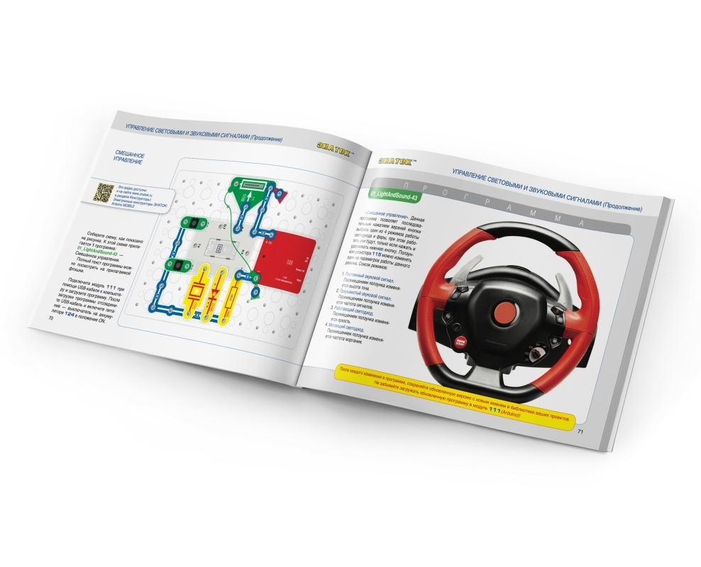 Вы можете начать с предложенных в красочной инструкции проектов, закачав готовые программ с флэшки, входящей в набор, а затем создать множество своих оригинальных проектов. Полученные знания помогут вам в учебе, а в дальнейшем, создавать новые образцы роботов, бытовой техники, компьютеров, смартфонов, работая в высокотехнологичных компаниях. А это уже не игрушки.