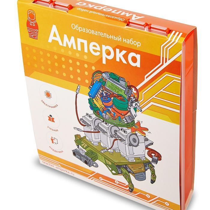 Образовательный набор включает плату Iskra Uno (полный аналог Arduino, произведённый Амперкой в России), более 150 радиодеталей и учебник «Основы программирования микроконтроллеров».