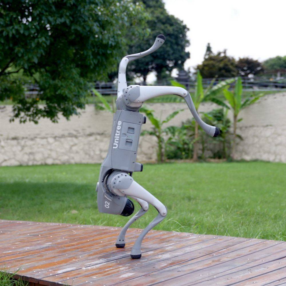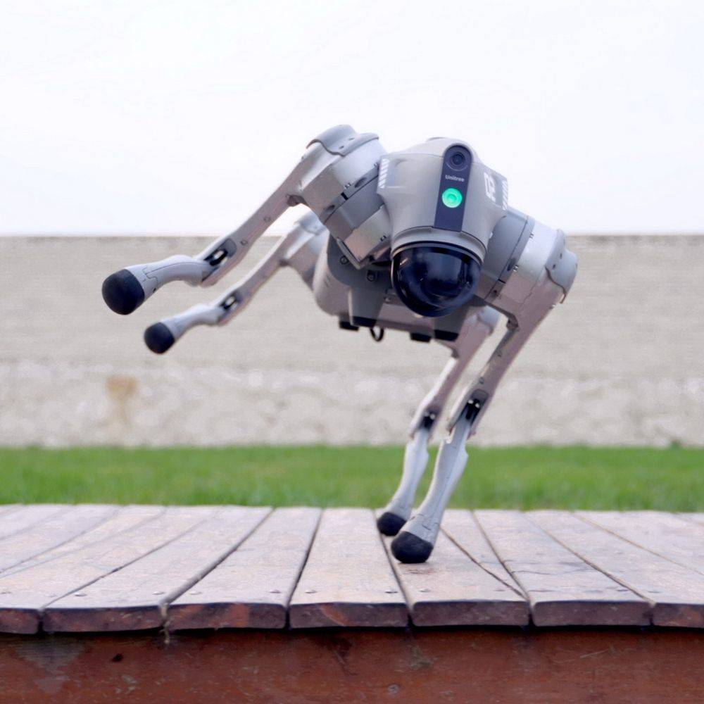 Благодаря крупномасштабному обучению с помощью ИИ, GO2 обучился продвинутым способам передвижения, повысил стабильность и выучил много различных трюков.